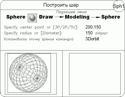 • Ttr – построение шара по заданному радиусу, касательному к двум объектам. Указанные точки касания проецируются на текущую ПСК.