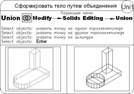 Команда INTERSECT позволяет при пересечении нескольких существующих объектов создать новые составные тела и области (рис. 16.16). Созданное сложное тело занимает объем, общий для двух или более пересекающихся тел, при этом непересекающиеся части объемов из рисунка удаляются. Команда вызывается из падающего меню Modify -> Solid Editing -> Intersect или щелчком на пиктограмме Intersect на панели инструментов Solid Editing.