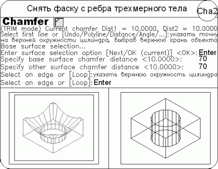Select an edge or [Chain/Radius]: – нажать клавишу Enter для завершения работы команды