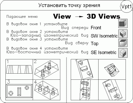 Команда 3DWALK интерактивно меняет вид трехмерного чертежа, при этом кажется, что наблюдатель обходит модель. Команда вызывается из падающего меню View -> Walk and Fly -> Walk или щелчком на пиктограмме Walk на плавающей панели инструментов Walk and Fly или 3D Navigation.