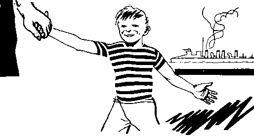 Буксир — маленький пароходик, который тащит в гавань баржи и большие суда.