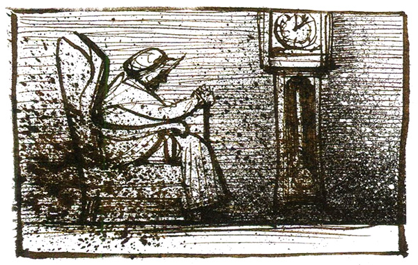 Уложил Нил старика обратно на печку, тулупом накрыл и стал обихаживать. Весь день вокруг колдовал, дымом обкуривал, заговоры читал, примочки на лоб делал и к запястьям пучки травы привязывал. К вечеру Ферапонту вроде полегчало, заснул он крепким сном. Нил уже и сам ложиться собрался, как вдруг слышит — за спиной дверь скрипнула и шорох раздался. Стал Нил вглядываться, свечу в глиняном плошке взял и светит в тот угол, откуда шел звук. Пляшут на бревенчатой стене черные тени, а ничего не видать. Нил встал с лавки, обошел стол кругом и присел на корточки. Держит плошку со свечой прямо перед собой на вытянутой руке и в темноту вглядывается. Смотрит — в дальнем углу, прижавшись к стене, сидит большая белая крыса, и, не мигая, глядит на него. И в каждом ее красном глазе отражаются пляшущие огоньки.