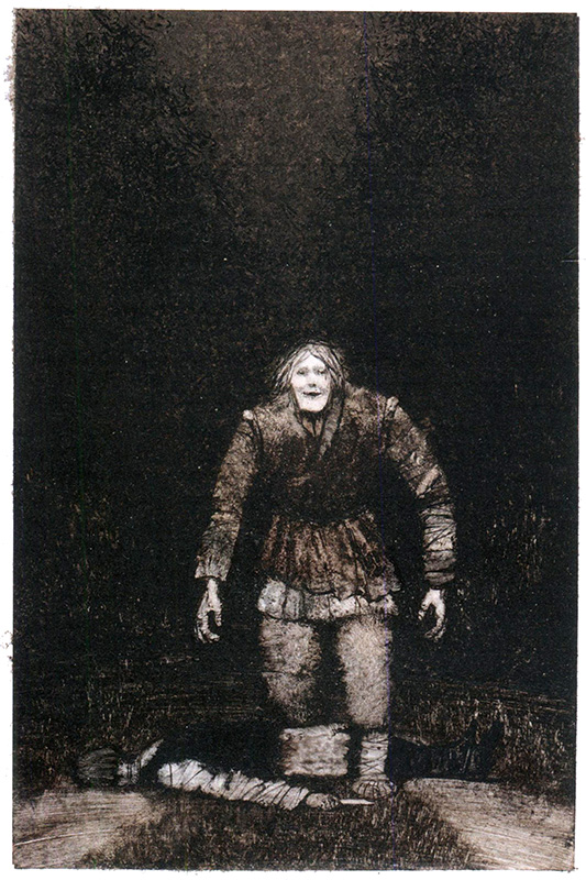 Вдруг видит — мелькнула за спиной Катерининого мужа какая-то тень. Тот тень эту тоже заметил, обернулся и как резанет ножом туман! Да, видать, мимо. А второй раз резануть уже не успел — на него из тумана кто-то большой навалился, схватил за голову и в сторону рванул. Хрустнуло что-то, Катеринин муж на землю упал и замер. Только нога у него два раза дернулась.