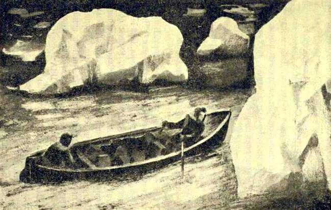 Шлюпка пошла в ледяной пролив. Мы долго смотрели им вслед. Это было смелое предприятие, смелое и опасное. Эхо донесло до нас гул отдаленного выстрела. Смельчаки прощались с нами…