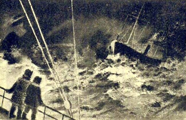 Во время шторма по палубе прокатилась волна. Эта волна сорвала костер дров, сложенных на палубе, и сломала трапп левого борта на капитанский мостик. (На судах траппом называют каждую лестницу.) Капитан нашего ледокола, Николай Александрович Клих, почти все время был на мостике.