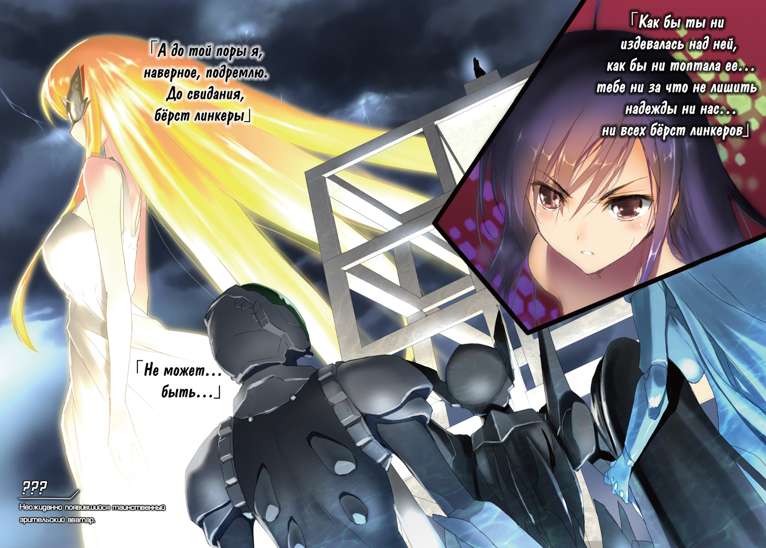 И речь не только об офицерах. Три новичка Нега Небьюласа — Сильвер Кроу, Лайм Белл и Циан Пайл — тоже не отступили перед лицом превосходящих числом носителей комплектов и сражались до последнего. Что же до Циан Пайла, освободившегося от власти ISS комплекта, он и вовсе создал меч, основанный на собственной Инкарнации, и с его помощью одолел «Дистанционный Разрез» Руй, в эффективности которого против аватаров ближнего боя она не сомневалась никогда.
