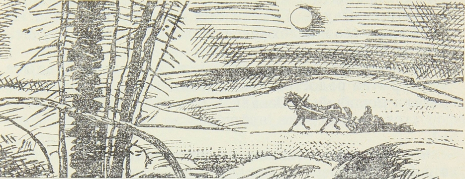 Спит деревенька. Ни огонька, ни дымка. Лишь в морозном проеме неба покачивается луна, ярко освещая снежные козырьки крыш.