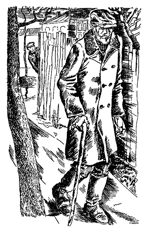 В конце переулка стоял трёхэтажный большой старый дом. В нём было множество дверей и окон. Штукатурку на его стенах давно уже смыли дожди, и дом почернел. Сейчас в окнах дома светились огни и из глубины слышалась музыка. Человек вошёл в открытые двери темного коридора и исчез там. Он ни разу не оглянулся и не видел, что Серж всё время шёл следом за ним, прячась за дома и заборы. Он хотел узнать, куда пойдёт этот старик. Серж тогда только для вида отбежал в сторону, а потом вернулся и пошёл следом за ним. И теперь он злорадно смотрел, в какой дом вошёл ненавистный ему старый человек. С самодовольным видом Серж глядел в тёмный коридор трёхэтажного дома и насвистывал весёлую песенку. А старый человек ни о чём не подозревал.