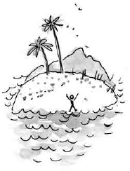 Но Петя акул загнал под стол, а кота спас. Подплывают они к необитаемому острову, а остров закрыт на замок. А ключ унесла с собой Петина мама, которой ни капельки не было.