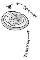 В девять двадцать шесть на кухне жил желтый жирный блин по имени Филимон. Он лежал на тарелке и выразительно пыхтел. А еще он нетерпеливо хлопал по тарелке, смешно приподнимая один свой бок, который был потолще. По соседству с пыхтящим блином Филимоном жил маленький Петинрот. Он висел под Петинымносом и тоже тихонечко пыхтел. Мама сказала им по очереди: