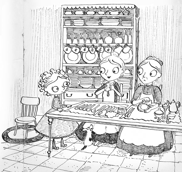 Сидя за большим деревянным столом, бабушка показывала новой служанке, Салли, как правильно чистить серебро. Бабушка постоянно жаловалась, что Салли не знает, где какой конец метлы, но девочка была уверена – бабушке новая служанка очень нравится!