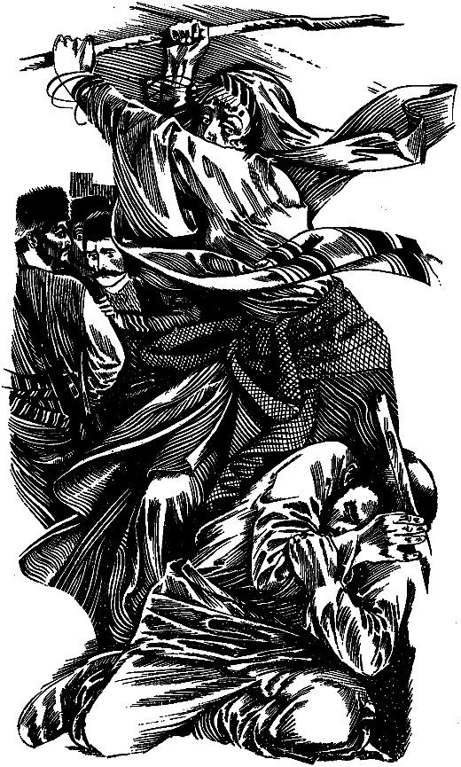 Стали биться. Вижу — Джемо на дубинках биться мастер. Куда Сорик-оглу ни повернет, она ему ходу не дает, удары его играючи отбивает. Загоняла его до поту, в атаку перешла. С первого удара у него дубинку из рук вышибла. После по правому плечу погладила — рука его тряпкой повисла. Ударился он бежать. Она одним прыжком догнала и по другому плечу тюкнула. Застонал Сорик-оглу, в ноги ей повалился. Саданула она ему под дых — на снег осел, кровавая пена изо рта запузырилась. Тут Джемшидо не выдержал, стал его прикладом добивать, мои люди ему пособили.