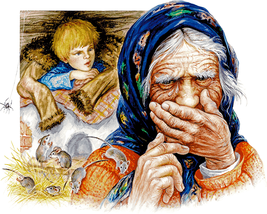 Бабка, плача, сказала Фильке, что наверняка уже замёрзли колодцы и теперь их ждёт неминучая смерть. Воды нет, мука у всех вышла, а мельница работать теперь не сможет, потому что река застыла до самого дна. Филька тоже заплакал от страха, когда мыши начали выбегать из подпола и хорониться под печкой в соломе, где ещё оставалось немного тепла. «Да ну вас! Проклятые!» – кричал он на мышей, но мыши всё лезли из подпола. Филька забрался на печь, укрылся тулупчиком, весь трясся и слушал причитания бабки.
