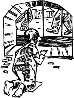 Мокрая, холодная осень стояла в городе. В очереди за хлебом Пашка ходил в старой материной кацавейке и, если уж очень было холодно, надевал на босые ноги старые галоши. Уличные мальчишки узнавали его в таком одеянии за версту: «Вон он, смотрите, Пашка-миллионщик идёт!», «Эй, Пашка, здравствуй!»