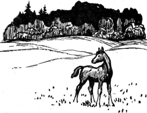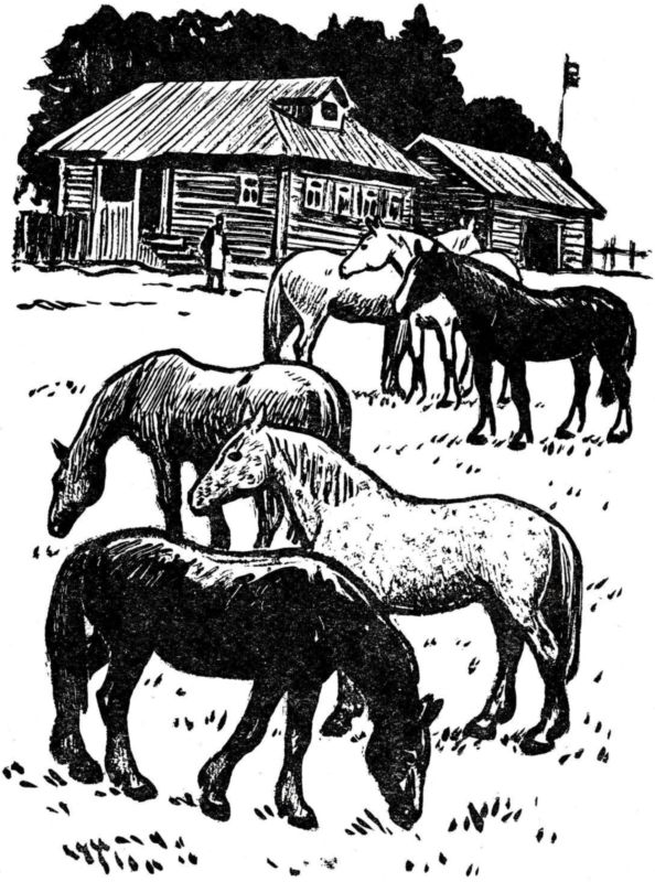В Тишковском лесничестве было шесть взрослых лошадей и один жеребёнок. Он был кургузый, большеголовый, с мохнатыми бабками и узловатыми коленями, на коротких сильных ногах — уже и сейчас угадывалось, что из этого жеребёнка вырастет хорошая рабочая лошадь.