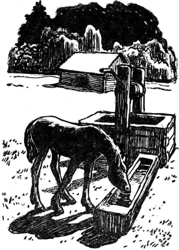 Он припал к колоде с водой и пил, пил, пил не отрываясь.