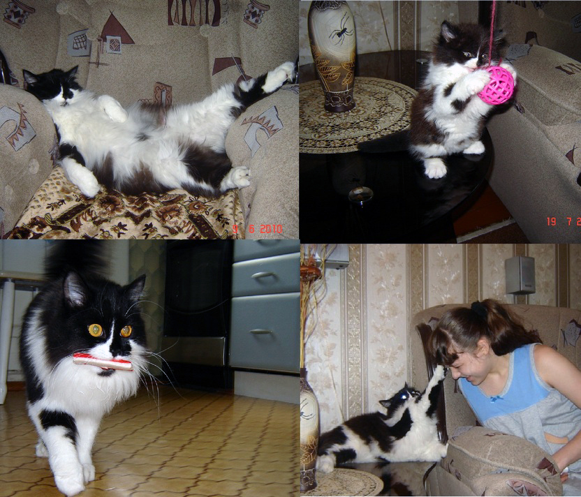 Кошечка росла не по дням, а по часам. Через полгода она достигла веса трёх килограмм, а ещё через полгодa – пяти. Приготовленный для её кошачьих нужд когтеточилку и валенок, она игнорировала принципиально. "Чё заморачиваться? Ковёр есть, диван есть, кресла там всякие разные…" Таким образом решилась проблема остроты и красоты когтей.