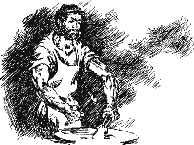 — А ну слегка стукни молоточком… Да не бойся искры, нехай она тебя боится.