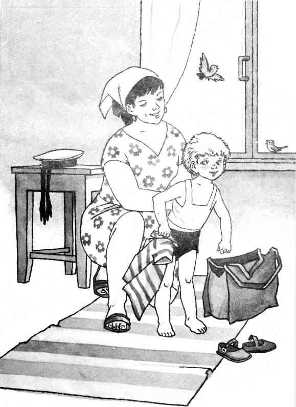 На дворе ещё не было солнца. От мокрой травы и свежего утреннего ветерка у Вольки покраснел нос, он поёжился и просунул в тёплую ладонь матери свою холодную ручонку.