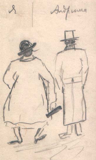 На прогулке. Рисунок Екатерины Белобровой. 1936 год