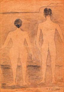 На берег. Рисунок Екатерины Белобровой. 1914 год