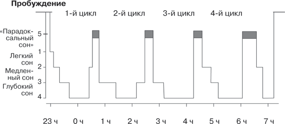 Каролина нарисовала погружение первой стадии, затем второй, третьей, четвертой, а из глубины «моря» прочертила вершину парадоксального сна, располагающуюся на одном уровне с поверхностью, то есть с моментом пробуждения.