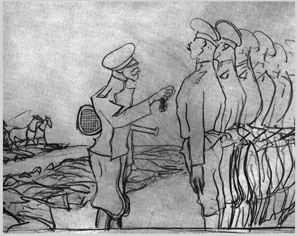 Идет Онегин на два годаС Востока защищать Союз,Служить советскому народу.Вот злой майор в вагоны грузСолдат тех будущих толкает,А мам их матом отгоняет.Гудит печально тепловоз,Огней не видно из-за слез.Родители руками машут,И чья-то мать (простите слог),Как поезд тронулся, «Сынок, —Кричит, – мой, Саша, милый Саша!»…Так отбывать двухлетний срокОнегин двинул на Восток. XXIII