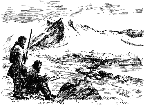 Дорога шла по берегу моря. Версту за верстой Алексей замечал контур береговой линии Концом ножа он вырезал на гладко оструганной доске все значительные мысы, выдающиеся в море, заливы, бухты, прибрежные камни, опасные для судов, и все приметные места. Отойдя немного к югу от двух черных скал, мореходы увидели большой залив, тянувшийся на десять — двенадцать верст. Совсем рядом уходил в море низкий песчаный мыс.