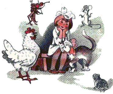 Выйдет из-за печи курица Ряба. Она в такие морозы за печкой жила. Выйдет, постоит на одной ноге, скажет: «Куррр-квох».