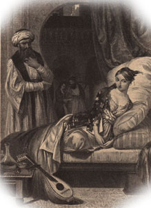 В подушках утопая, как в цветах,Под пологом раскинувшись лениво,С улыбкой самовластья на устахЛежала дама. Евнух торопливо,Не поднимая глаз, повергся в прахИ потянул Жуана; терпеливоЕму повиновался мой герой,Забавной озадаченный игрой.96