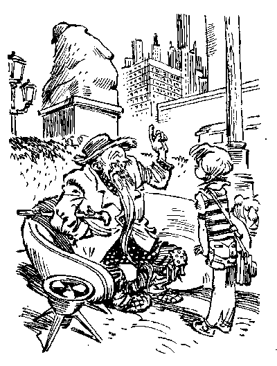 На лавочке сидел старичок с длинной седой бородой, в странной соломенной шляпе, надвинутой на кустистые брови. Старичок, казалось, дремал, но, когда Алиса проходила, вернее, пробегала мимо, он поднял голову и сказал: