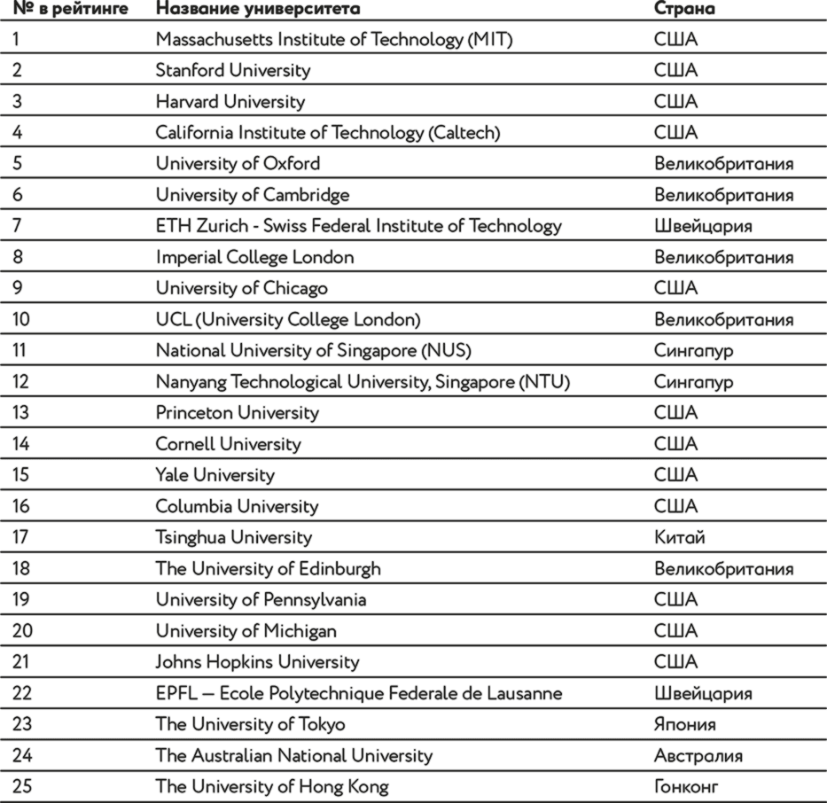 Рейтинг лучших ВУЗов мира (топ-25):