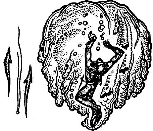 «Руслан» со своей батиандрогенной аппаратурой был далеко, да Аракелову для его эскапады и не нужно было превращаться в батиандра. Не нужен был ему даже акваланг — в поверхностных, богатых кислородом водах вполне хватало обычного «намордника», как именовалась на жаргоне рифкомберов фильтрующая маска Робба-Эйриса. Название родилось не случайно: если обычная маска закрывала только глаза и нос, то намордник охватывал лицо полностью — для увеличения площади фильтра. Правда, одной активированной пластины хватало всего на восемь-десять часов, но Аракелову и этого было более чем достаточно. К тому же в мешке лежала пара запасных — на всякий случай. За долгие годы работы батиандра такая запаслива предусмотрительность стала второй натурой Аракелова — порой даже вопреки здравому смыслу.