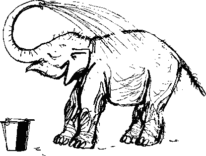 Пили слонята без посторонней помощи, сами. Рави опускал в ведро хобот, наполнял его водой и осторожно, чтобы не разлить ни капли, переносил в рот. У Шаши дела шли похуже — вода проливалась, но она всё же продолжала пить сама.