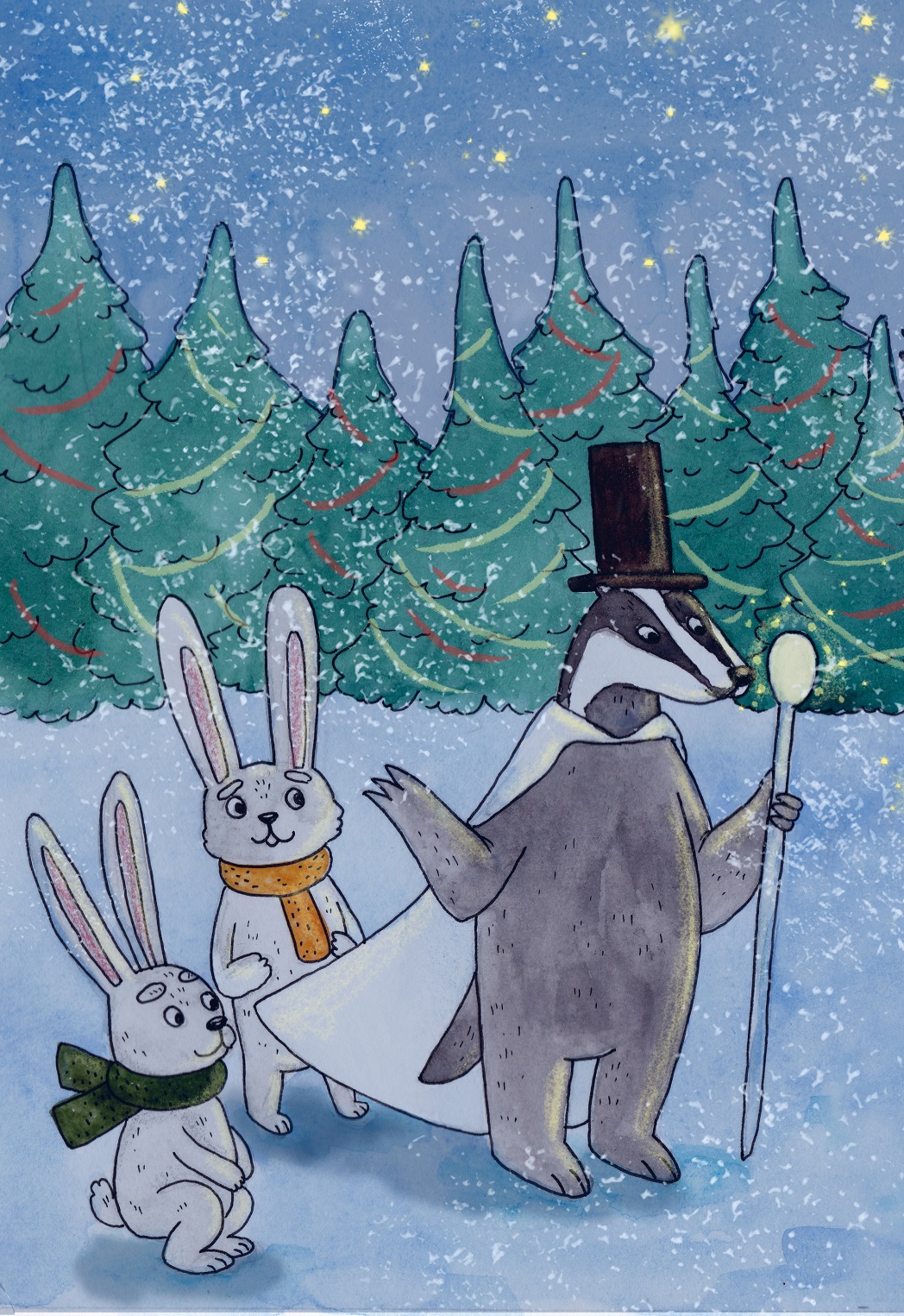 Он был стар и умен этот барсук. Его слова летели над поляной, и, кажется, почти замерзали в морозном воздухе, звенели и переливались в лунном свете. Он говорил об уходящем годе, о его печалях и радостях, о счастье и грусти,