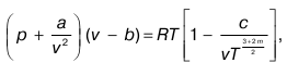 где а и b – постоянные величины в уравнении Ван-дер-Ваальса; m, c – постоянные, рассчитываемые опытным путем.