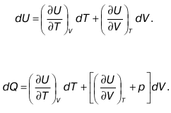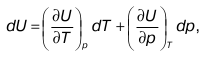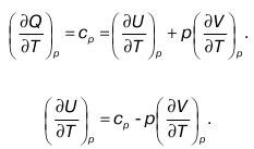 Это частная производная по давлению, взятая от значения внутренней энергии. 3. Частная производная по температуре.