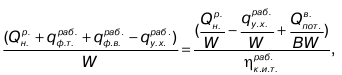 Эта величина аналогична коэффициенту полезного действия – понятию, используемому при оценке работы машин и механизмов. Коэффициент полезного тепло-использования характеризует эффективность тепловой работы печи и позволяет сравнивать совершенство энергетики различных печей. Допустим, что водяные числа W (водяное число W равняется произведению теплоемкости на массовый расход) продуктов сгорания и исходных веществ (топливо и воздух) горения равны, тогда подставив qyx в уравнение теплового баланса и разделив на W, получим: