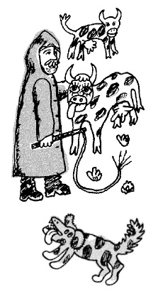 Поднялись на вершину Лобенской горы (Лобно), где стоит полуразвалившаяся церковь, выложенная из кирпича и почему-то обшитая досками. Рядом кладбище. Вершина горы представляет собой лысину – луг, где пасётся стадо красных коров. Вид, открывшийся нашему взору, был замечательный. Алё полностью видно не было, мешал окружающий вершину лес. Но зато с другой стороны (на запад) было очень красиво. Мы познакомились с пастухом. Он рассказал, что прямо перед нами – самая высокая местная гора Сторожиха. Между этой горой и нашей, внизу, у их подножья, лежит деревня Наумново, где живёт юная почтальонша и наш пастух. Он рассказал о себе: раньше был водителем туристских автобусов, а теперь от жизненной суеты перебрался сюда и пасёт совхозное стадо в тиши. Как он говорит, здесь иногда за сутки ни одного человека не встретишь (на горе то есть). Пригласил нас, если останемся, ночевать. Правда, на полу. Его дом с горы виден вторым, а зовут его Ефремовым Михаилом Алексеевичем.