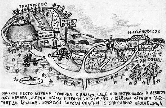 Уехали на автобусе в Пушкинские Горы, попили пива, купили две «72»-го и отправились в Петровское. В Петровском встретили нашего знакомого старшину Юру, который пригласил к себе в каптёрку. Там увидели страшную картину побоища: Юра устроил травлю мух. Все горизонтальные плоскости каптёрки – стол, подоконник, стулья и скамья – были завалены трупами мух с задранными кверху ногами. Некоторые несчастные доживали последнюю минуту и в страшных судорогах гибли, Юра был очень доволен. Предложил угостить его, но мы, как истые любители трезвости, от предложения отказались. Он пропустил нас через чёрный ход в парк.