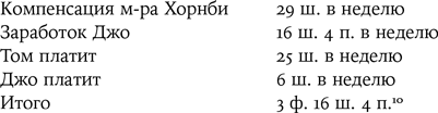 В доме на первом этаже две комнаты и кухня, на втором – три комнаты; крохотный дворик сзади, и там уборная. Горячая вода не подведена. Дом запущен, фасадную стену вспучило. Арендная плата – 12 ш., с коммунальным налогом – 14 ш. Общий доход семьи Хорнби: