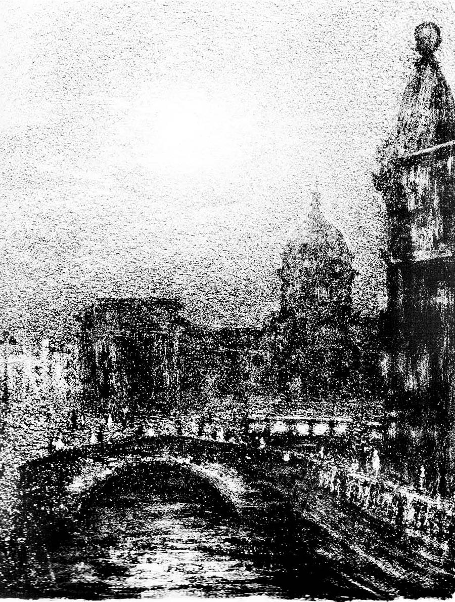 Затемнение города в дни Отечественной войны. 1945. Литография, 43x33.