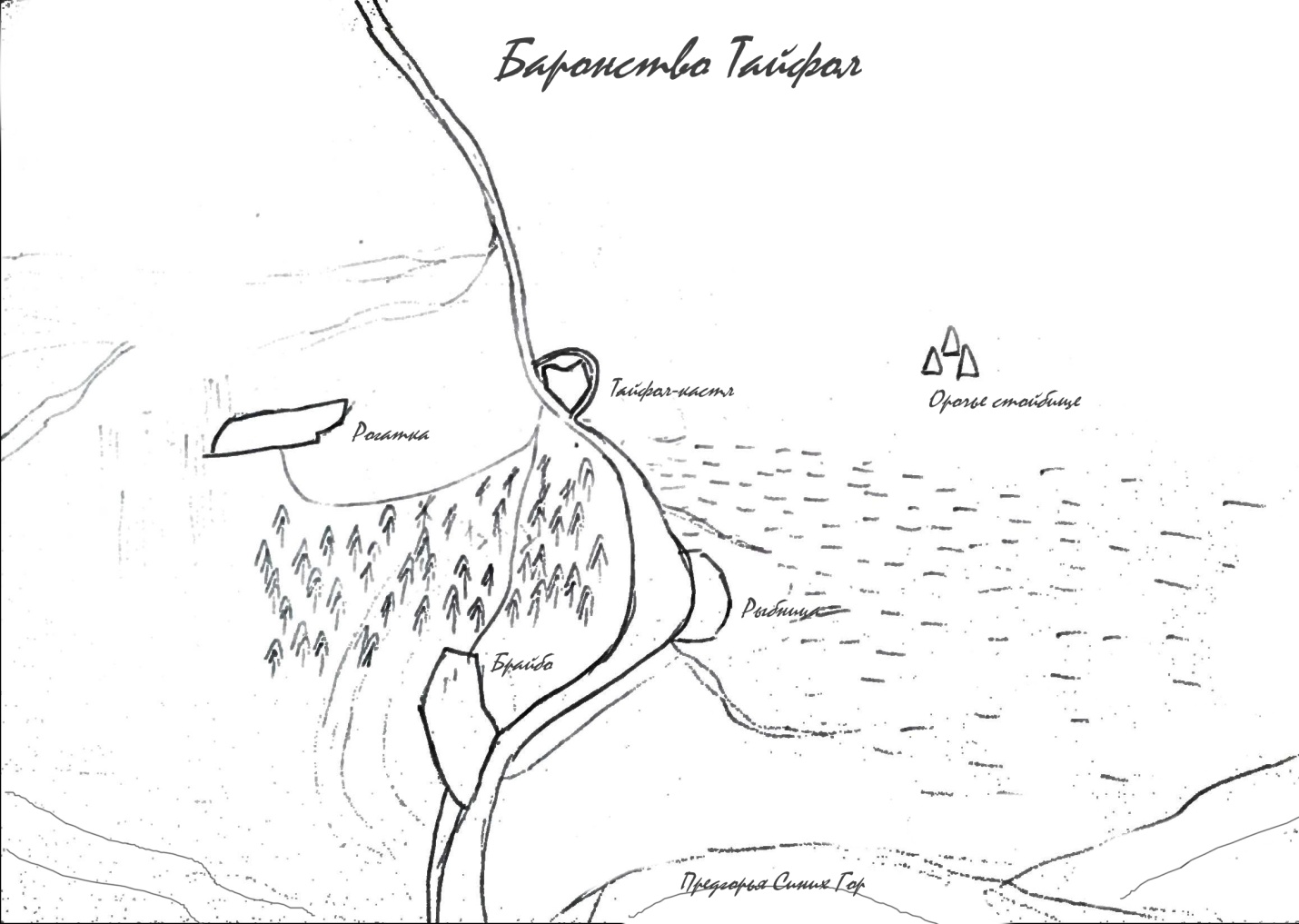 Кстати, Тайфол-кастл находился не где-то, а на границе со степью, оседлав холм, который огибала неширокая река. Справа от замка река разливалась и превращала низменность в болото. Слева местность была изрезана оврагами. Естественно, замок запирал удобный путь из степи в королевство (иначе на кой его ставить?). Обойти-то можно, но, например, за оврагами, километрах в пяти от замка, была одна из деревень, Рогатка. А деревни здесь, в марке Эйхол, напоминали небольшой замок. То есть и стена имелась и люди решительные внутри…