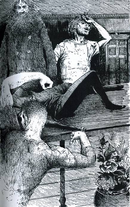 Микки-Мэк сидел на молочном ящике с равнодушным видом и все еще торчащим из штанов пенисом, и поигрывал с аккуратно выбритым лобком обмякшей на стуле женщины.
