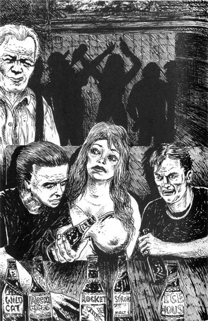 Когда Сара Мэй повела их по коридору между баром и бильярдным столом, Брайс специально встал между ней и Оги, по крайней мере, первый раз за сегодня не дав ему пялится на ее задницу. Один из бильярдистов с кием в руках коротко кивнул Брайсу. Он кивнул в ответ, и они двинулись гуськом по коридору. Он с удивлением увидел висящий на стене таксофон.