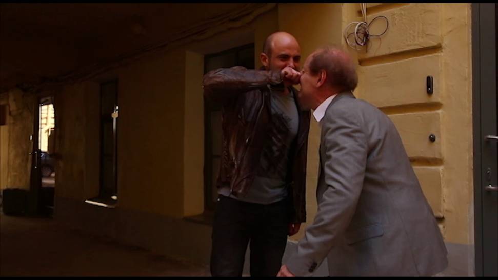 Гоша выволакивает Шепетиевского на улицу и запихивает в «БМВ», припаркованные у бордюра.