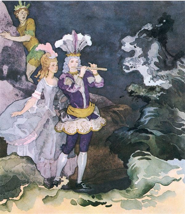 На весёлый звон колокольчиков и прекрасные звуки флейты отовсюду стали подходить люди. Они радостно приветствовали принца, пели и танцевали.