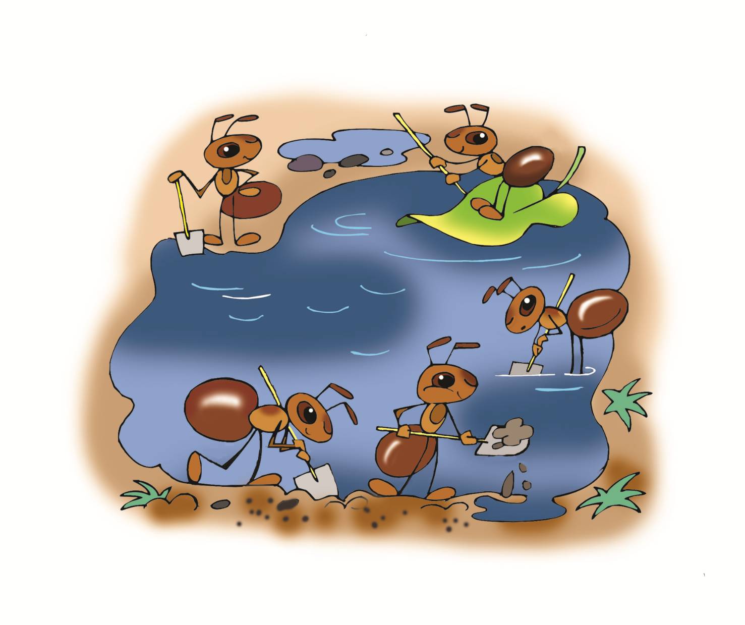 Раскопали они землю вкруг лужи широко-широко, и получилось огромное озеро, хотя и мелкое.