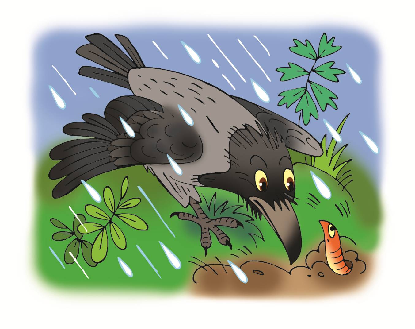 – Как хорошо в дождик охотиться! – тихо прокаркала смышлёная Ворона.
