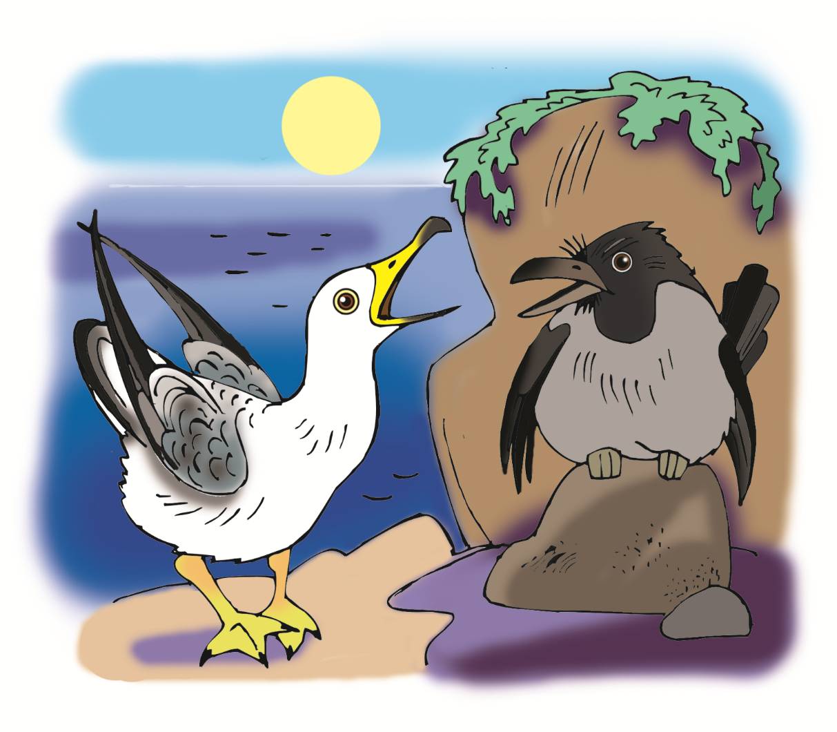 – Ты почему всё время находишься на жарком солнце и остаёшься такой же бело-снежной? – спросила Ворона у Чайки.